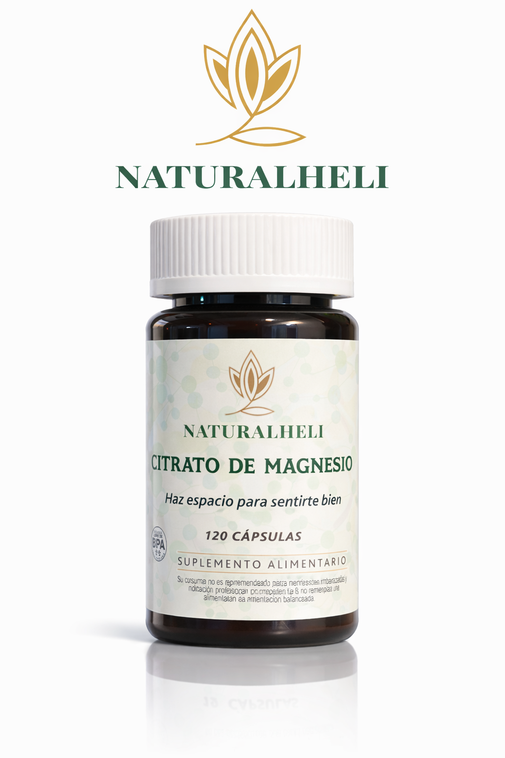 Citrato de Magnesio 500 mg 120 cápsulas NaturalHelí. Apoya sistema nervioso, función muscular y energía diaria. Disponible en Farmacias Alhelí.